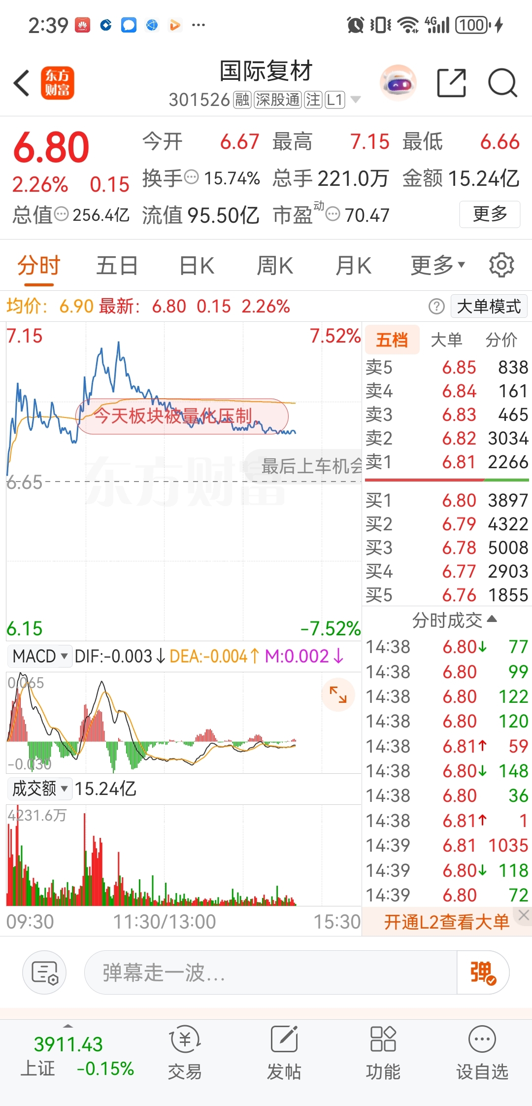 $国际复材(SZ301526)$ 很明显今天板块被量化压制了