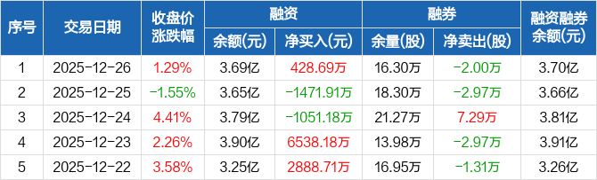 国际复材:融资净买入428.69万元,融资余额3.69亿元(12-26)