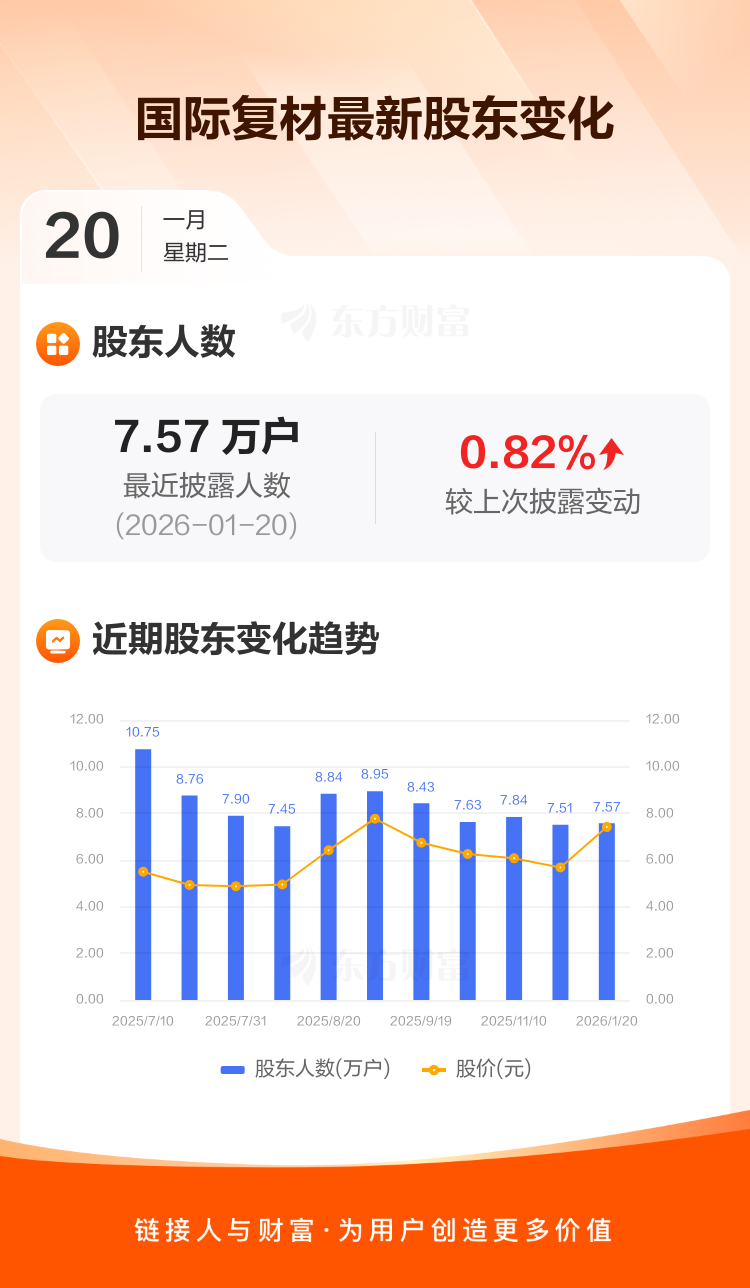国际复材:截至1月20日最新股东户数7.57万户,较上期增加0.82%