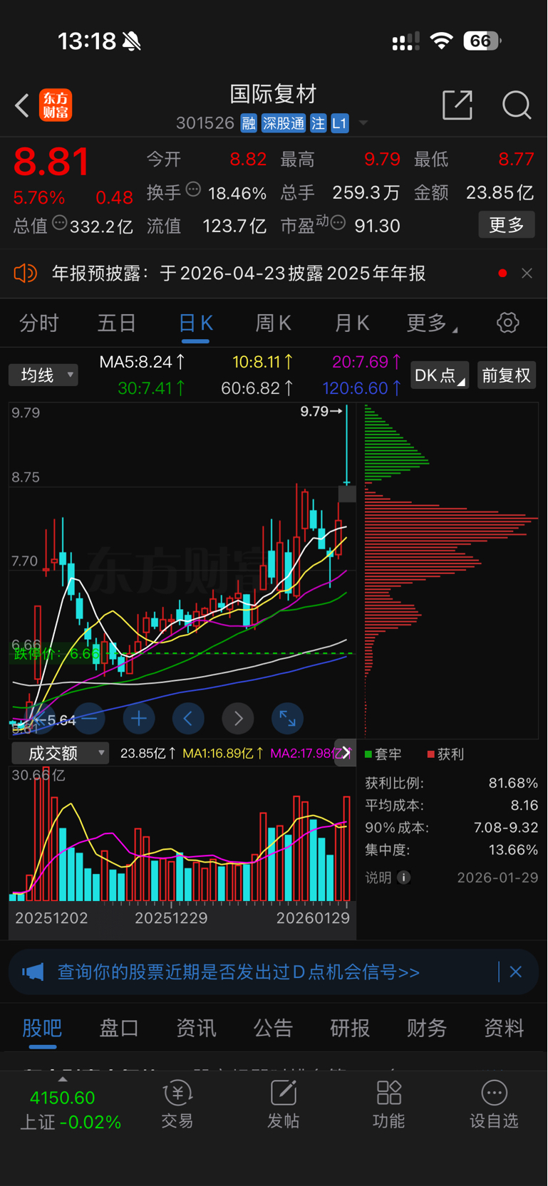 $国际复材(SZ301526)$ 这是套了多少,早上没时间盯盘啊,还好早上9.34跑了