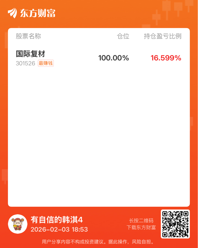 温馨提示: 1.根据《证券法》规定,禁止编造、传播虚假信息或者误导性信息,扰乱证券市场;2.用户在本社区发表的所有资料、言论等仅代表个人观点,与本网站立场无关,不对您构成任何投资建议。用户应基于自己的独立判断,自行决定证券投资并承担相应风险。《东方财富社区管理规定》