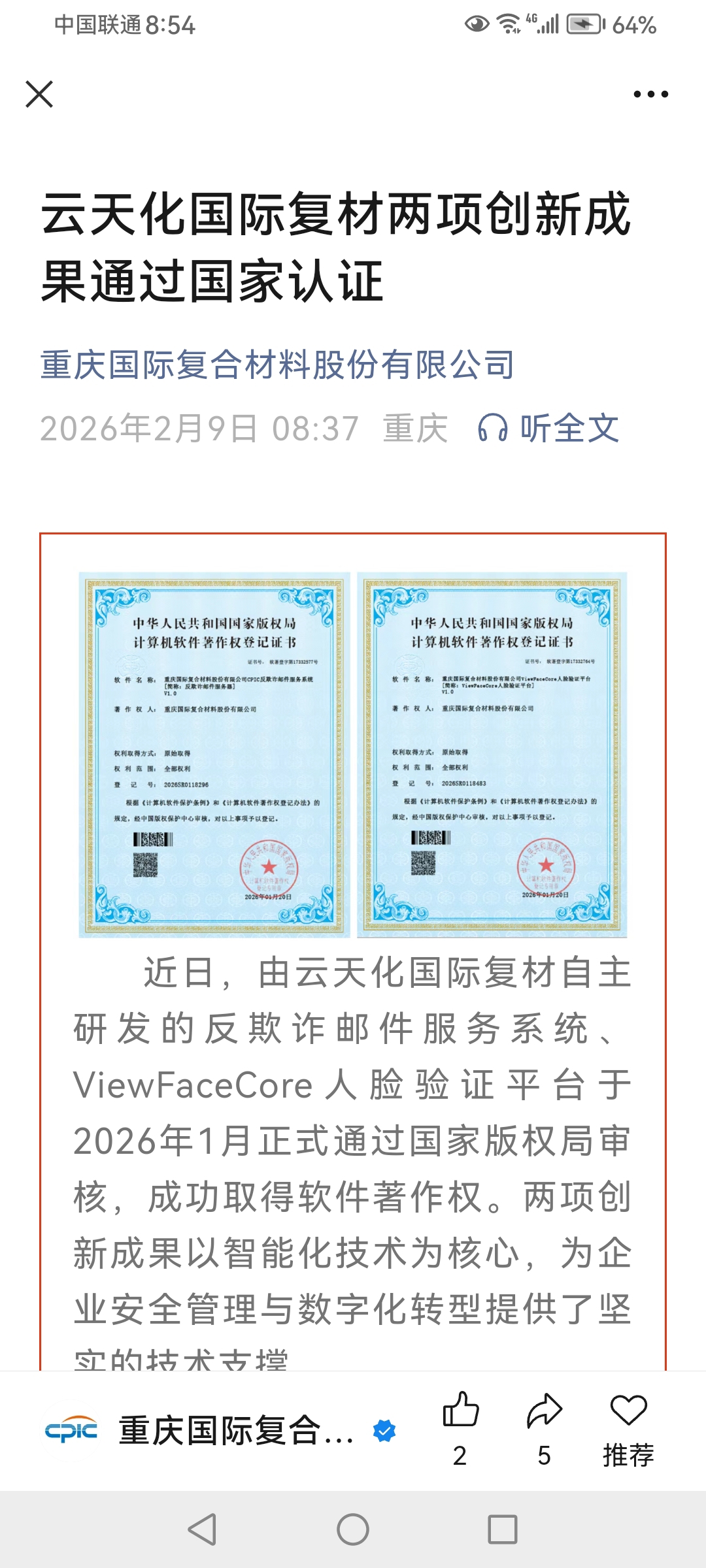 $国际复材(SZ301526)$ 公众号刚刚发的消息
