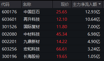 Wind实时监测数据显示,截至午间收盘,申万二级行业玻璃玻纤获得逾48亿元主力资金净流入。其中,中国巨石获得逾12亿元净流入,再升科技获得逾10亿元净流入,国际复材、中材科技等多股也获得超1亿元净流入。