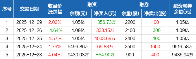多浦乐:融资净偿还356.73万元,融资余额1.05亿元(12-29)