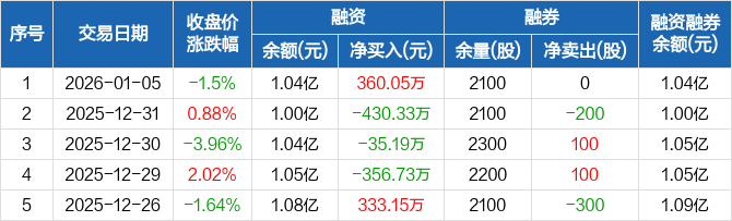 多浦乐:融资净买入360.05万元,融资余额1.04亿元(01-05)