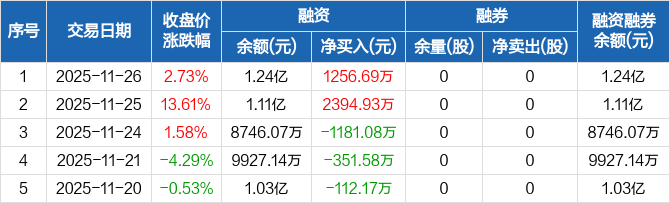 福赛科技:融资净买入1256.69万元,融资余额1.24亿元(11-26)