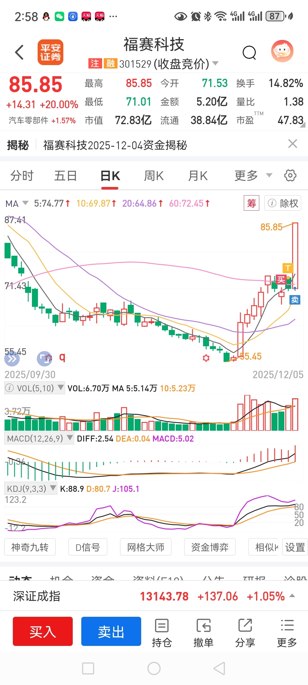 $福赛科技(SZ301529)$ 一天都没什么起色,卖完就直线拉升,眼看着不敢追了,倒在了黎明前