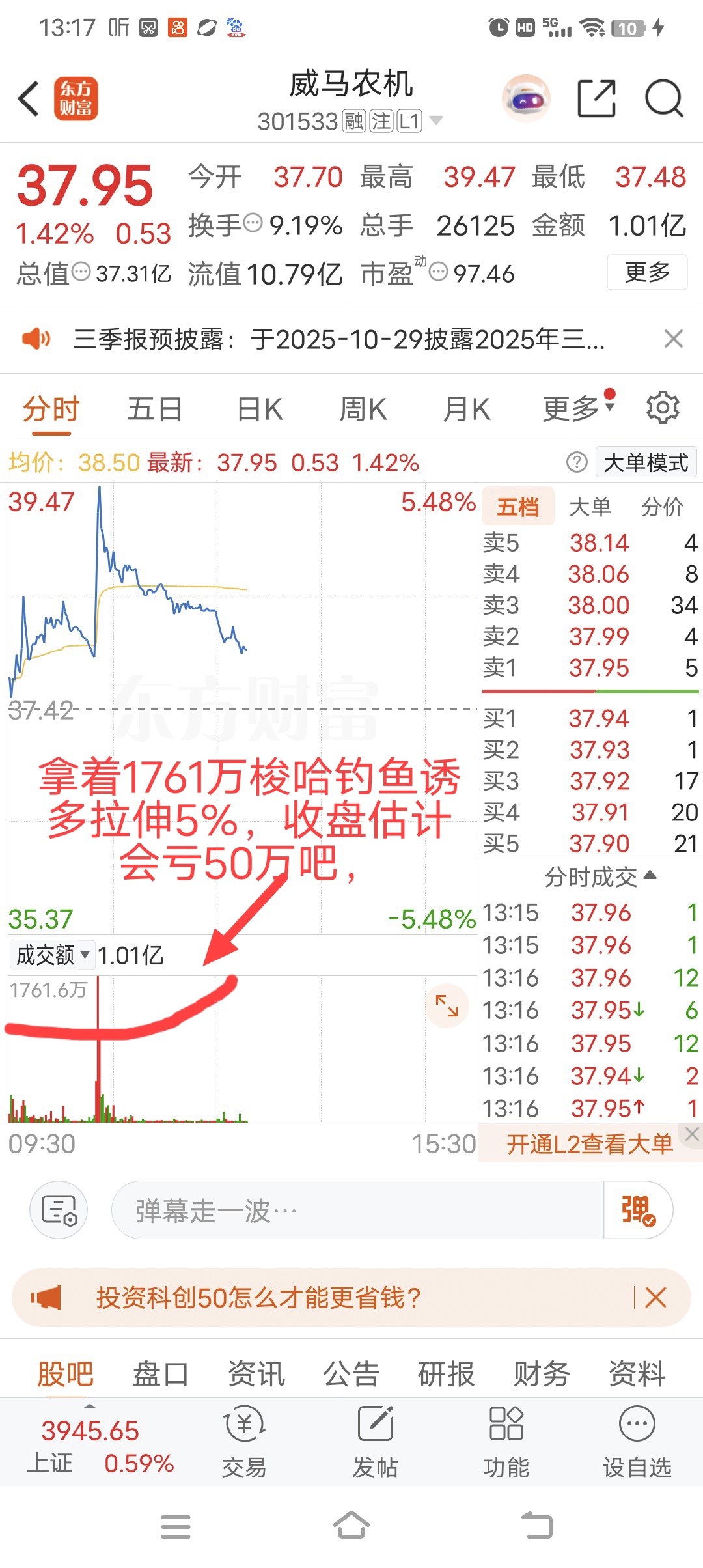 $威马农机(SZ301533)$ 天天跌,好意思吗???