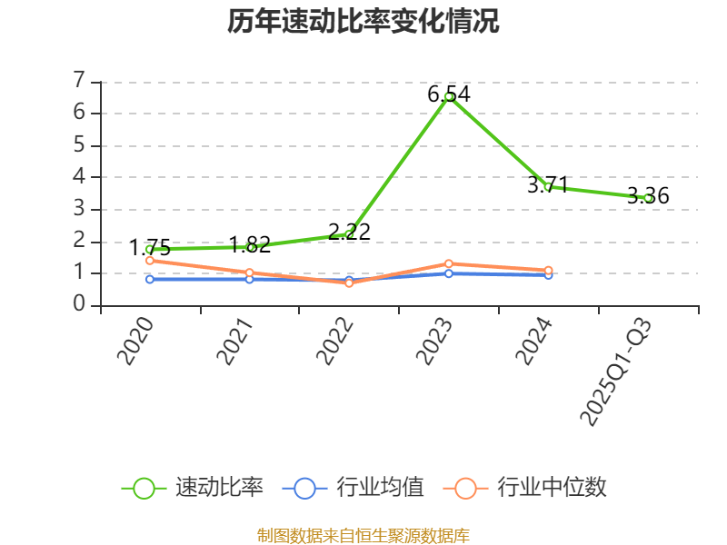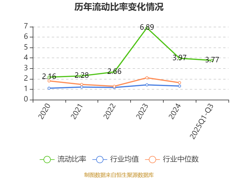 2025年前三季度,公司流动比率为3.77,速动比率为3.36。