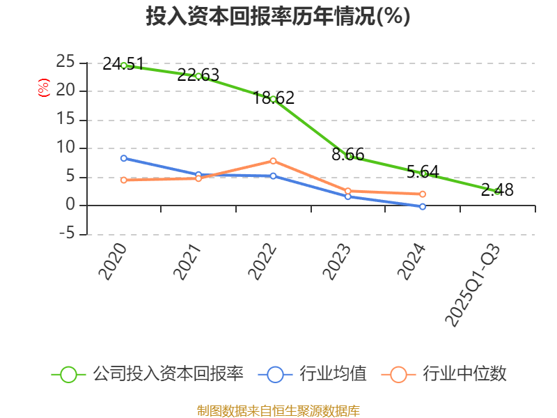 盈利能力方面, 2025年前三季度公司加权平均净资产收益率为3.18%,同比下降2.24个百分点。公司2025年前三季度投入资本回报率为2.48%,较上年同期下降1.76个百分点。
