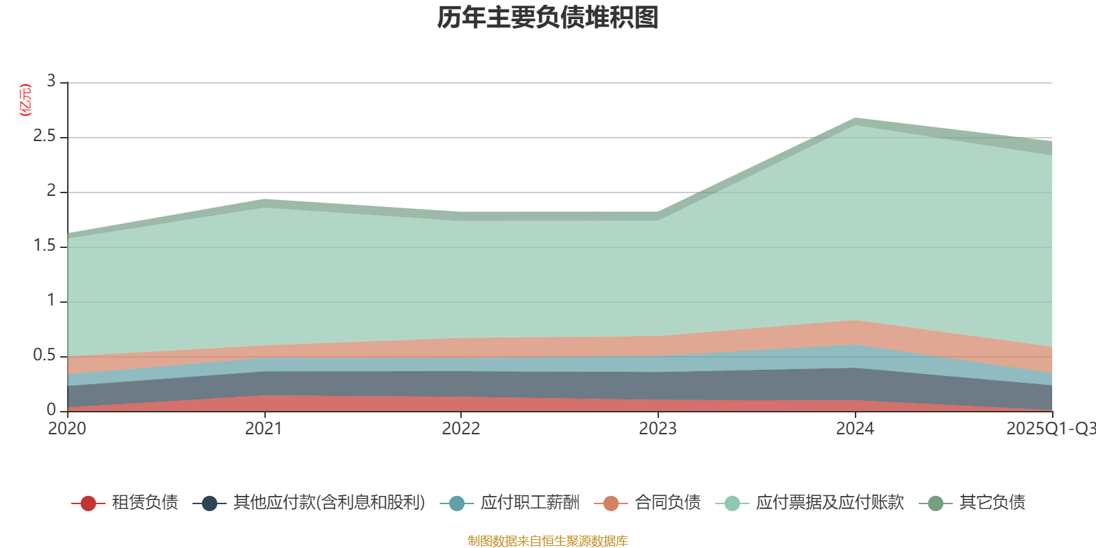 负债重大变化方面,截至2025年三季度末,公司应付职工薪酬较上年末减少48.07%,占公司总资产比重下降0.72个百分点;长期应付款合计占公司总资产的0.66%,上年末为0;租赁负债较上年末减少91.61%,占公司总资产比重下降0.64个百分点;其他应付款(含利息和股利)较上年末减少23.49%,占公司总资产比重下降0.46个百分点。