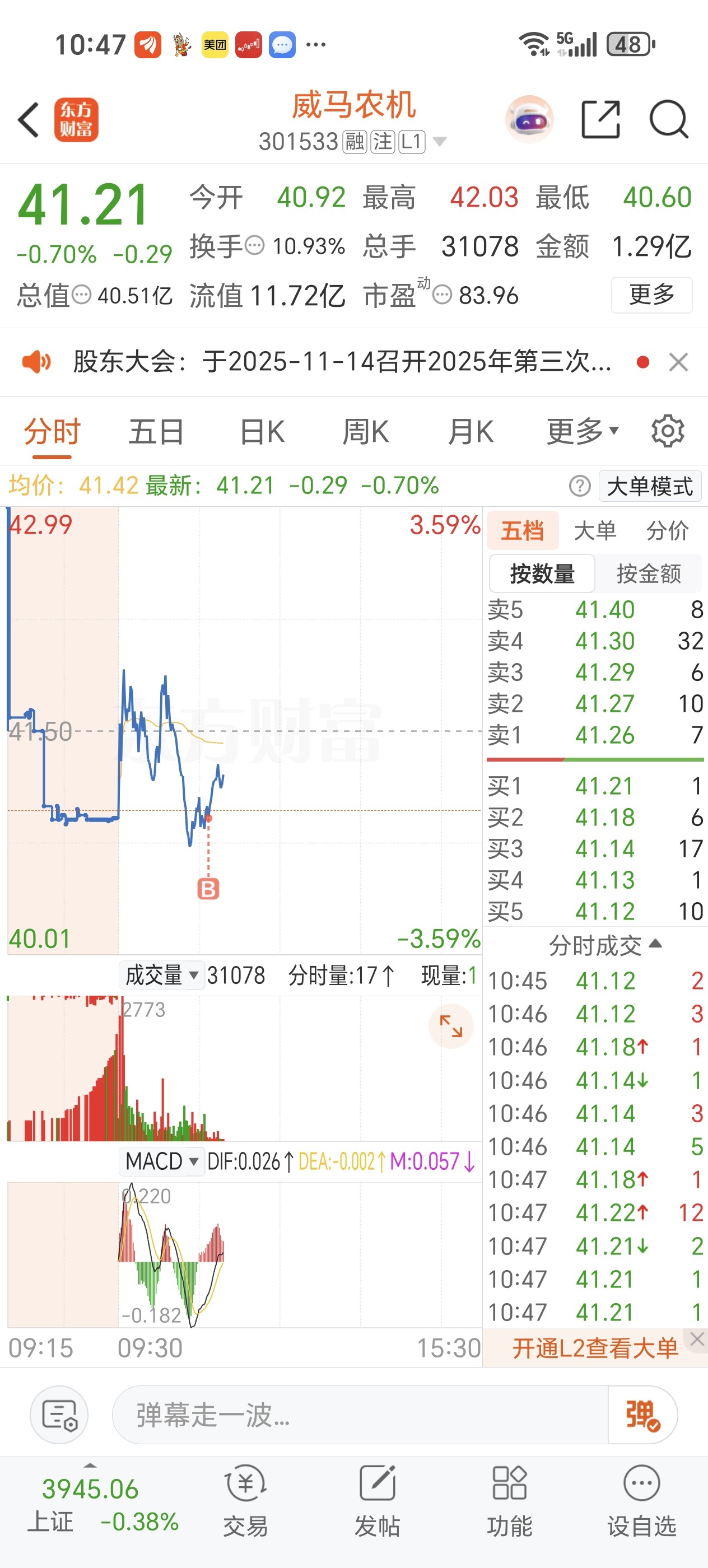 $威马农机(SZ301533)$ 哪位老表你就卖一手啊,浪费我五块钱手续费
