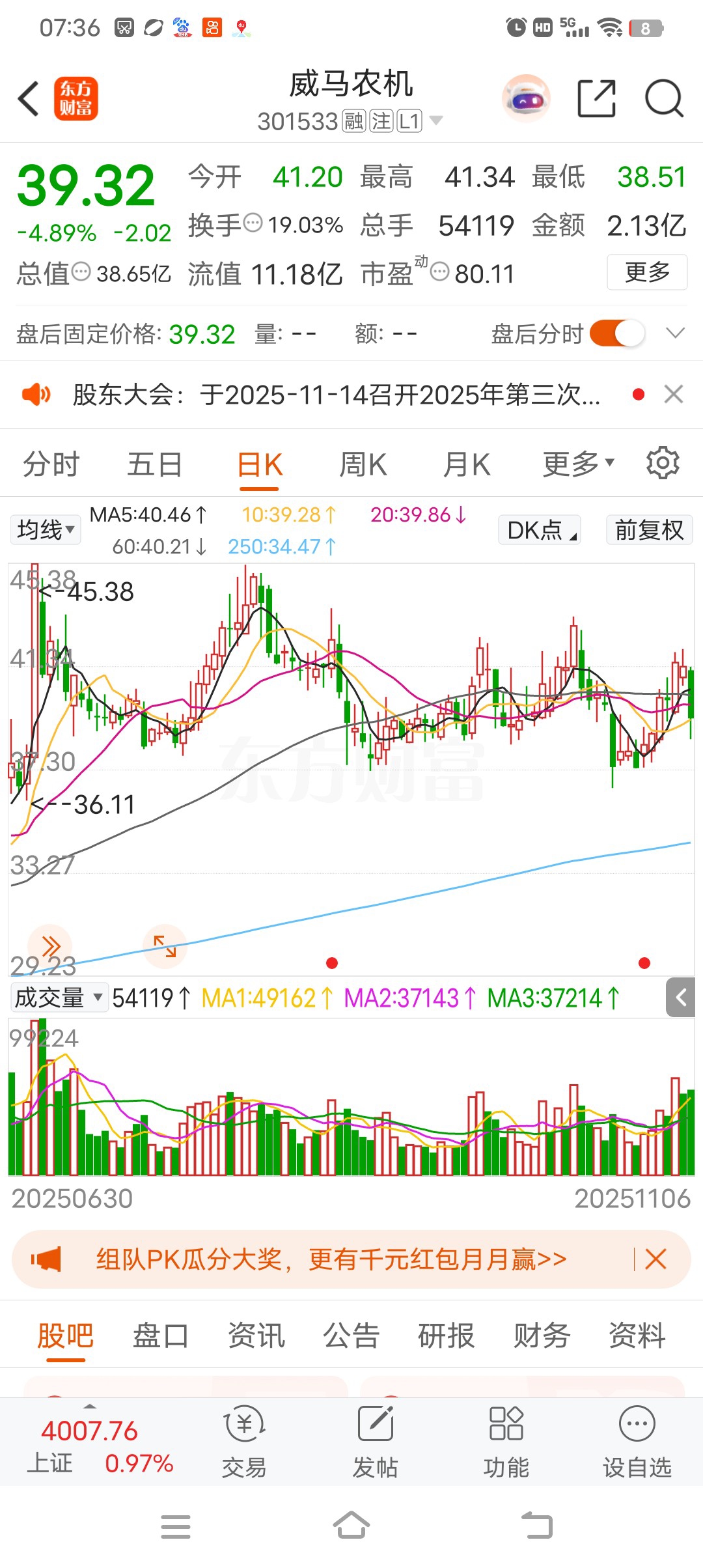 $威马农机(SZ301533)$ 手机没电了,只剩下8%左右的电力了,昨天晚上忘记充电了,今天看不了盘了,马年买马,六和彩,进来就挂彩了,,赢了开宝马,输了开农机,,格局和情怀,还有没有,,。昨天跌的太伤心了,,,昨天亏了我一个多月工资,这个月知能吃包菜了,,不能大鱼大肉了