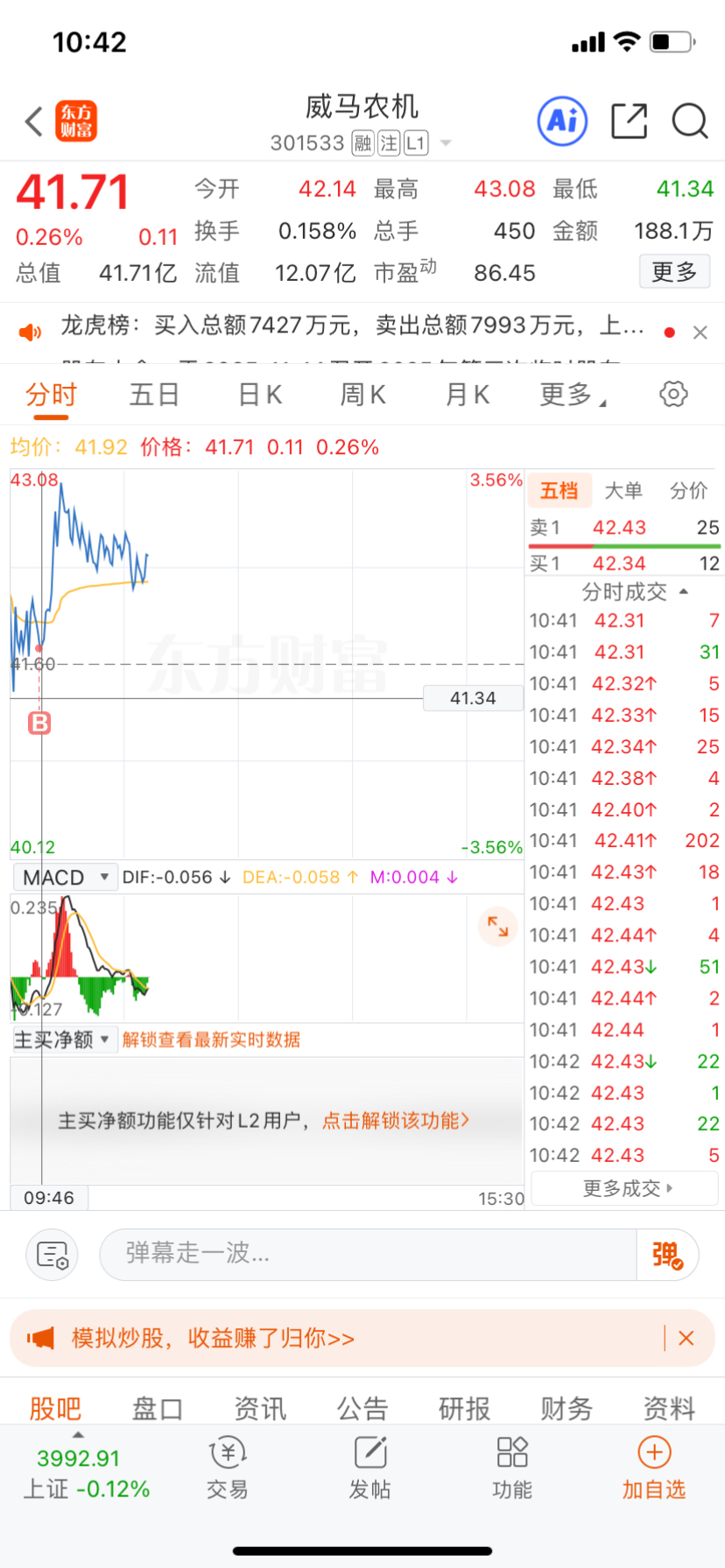 低吸介入$威马农机(SZ301533)$ #强势机会# #实盘记录# #投资干货# #投资随笔#