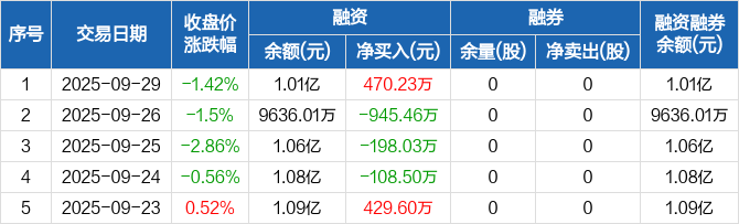 浙江华远:融资净买入470.23万元,融资余额1.01亿元(09-29)