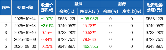 浙江华远:融资净偿还195.93万元,融资余额9553.12万元(10-14)