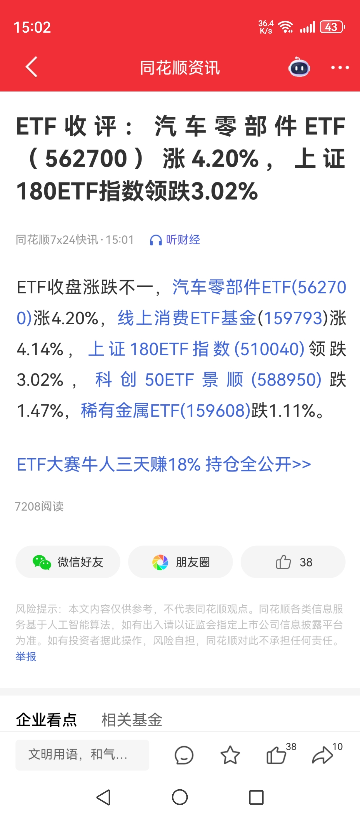 $浙江华远(SZ301535)$ 汽车零部件涨4.2%