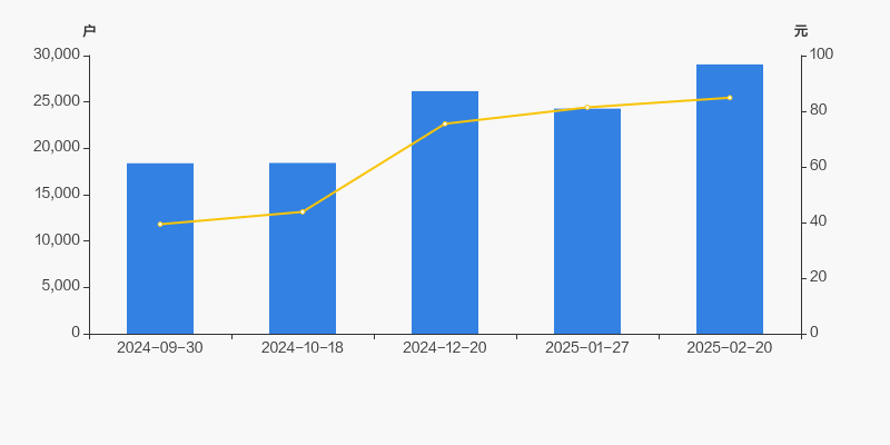 2024年9月30日至今,公司股东户数显著大幅增长,区间涨幅达58.01%。2024年9月30日至2025年2月20日区间股价上涨115.54%。