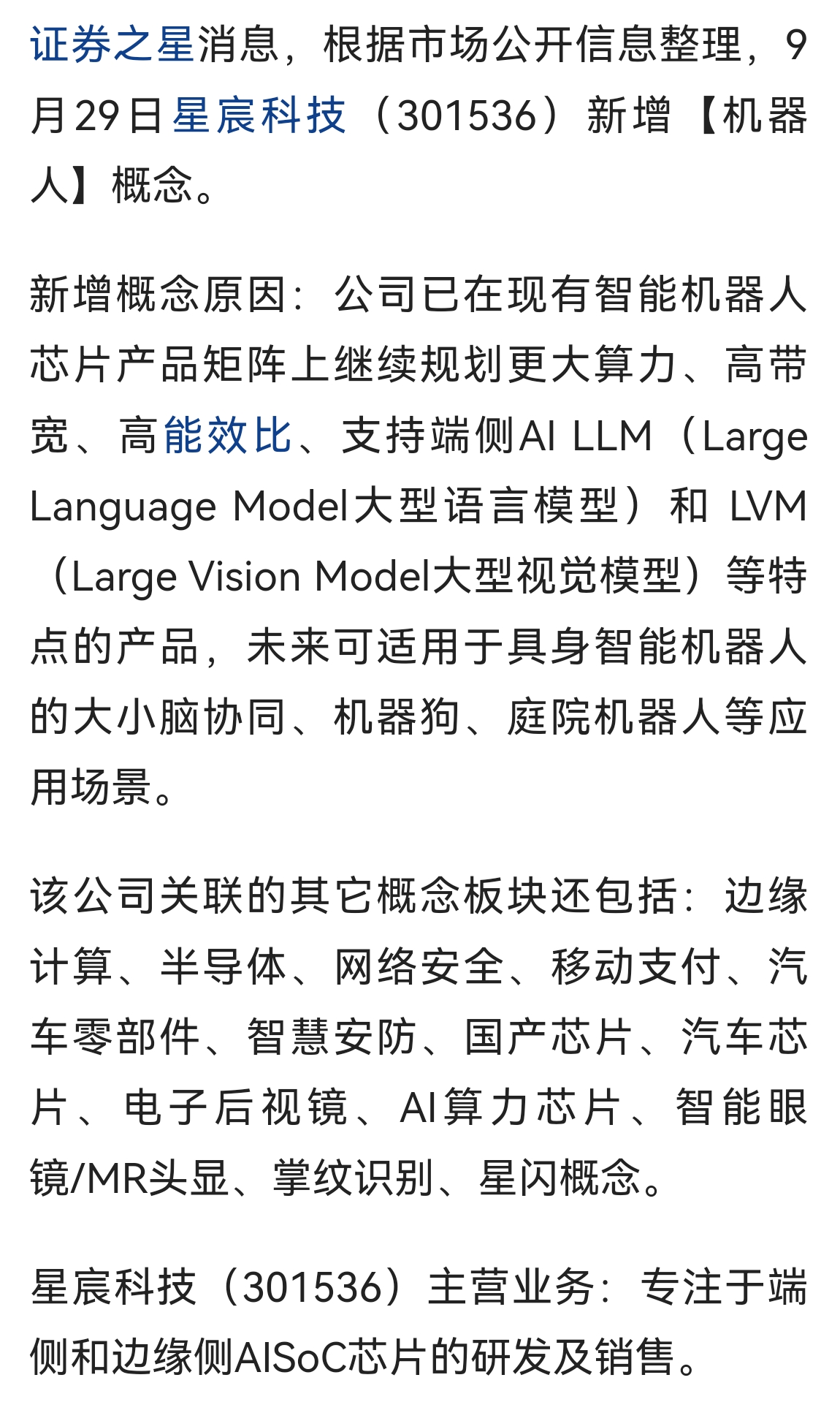 $星宸科技(SZ301536)$ 智能机器人芯片概念,核心