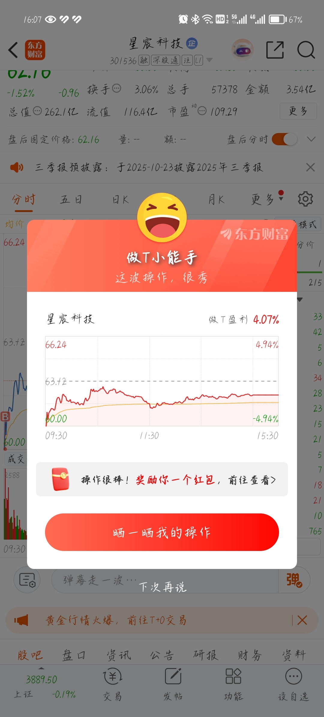 $星宸科技(SZ301536)$ 建仓68!做T成本做到62