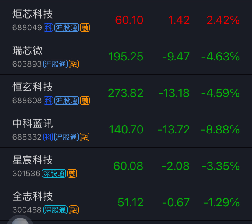 今天soc六小龙跌幅排名今天星宸很强了这段时间来第一次逆势变强下跌不再第一名加油