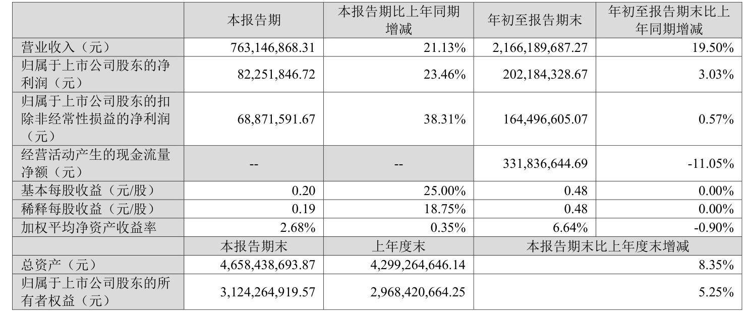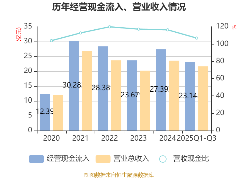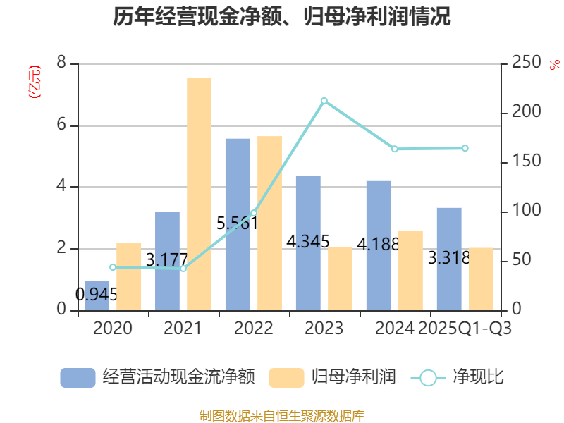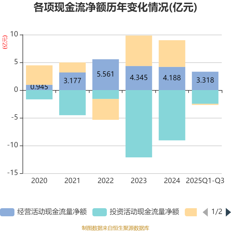 2025年前三季度,公司经营活动现金流净额为3.32亿元,同比下降11.05%;筹资活动现金流净额-2015.85万元,同比减少5.86亿元;投资活动现金流净额-2.48亿元,上年同期为-9.19亿元。