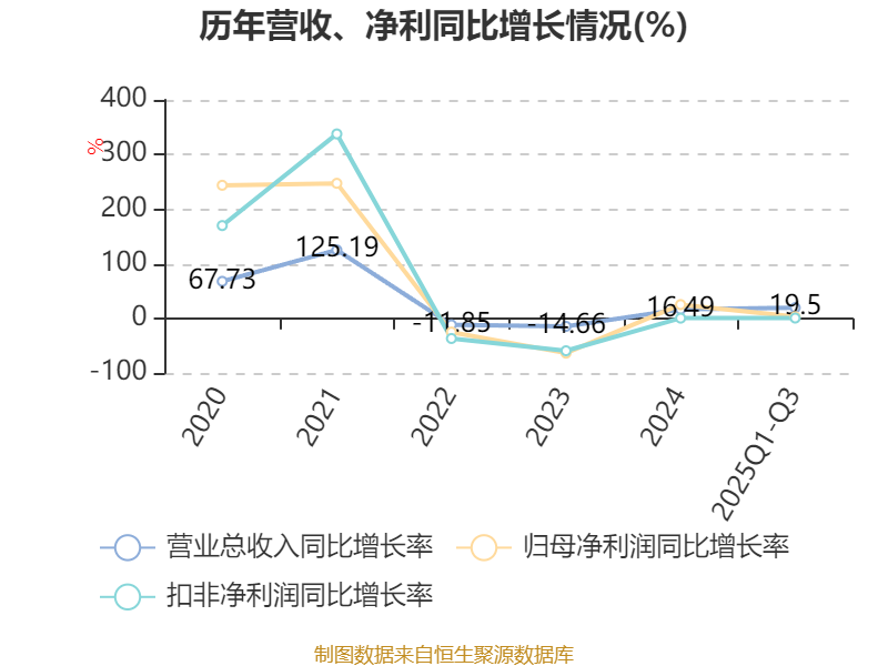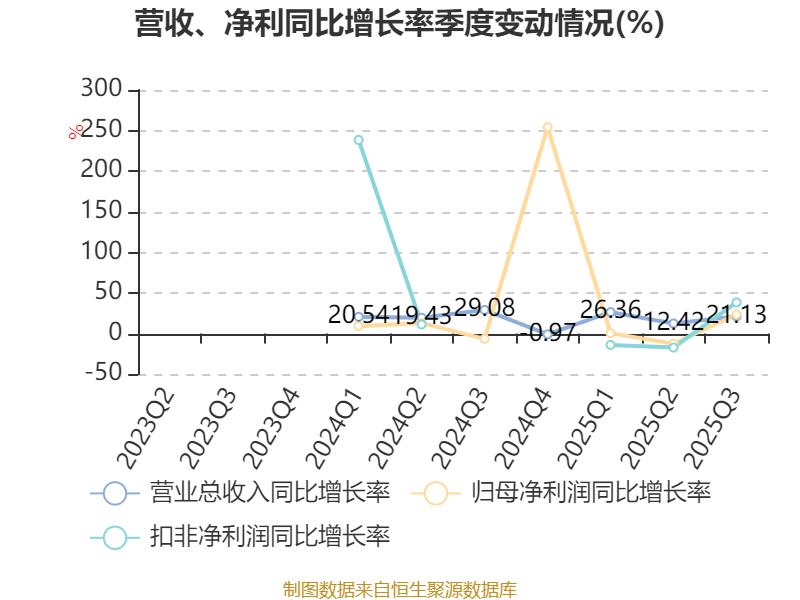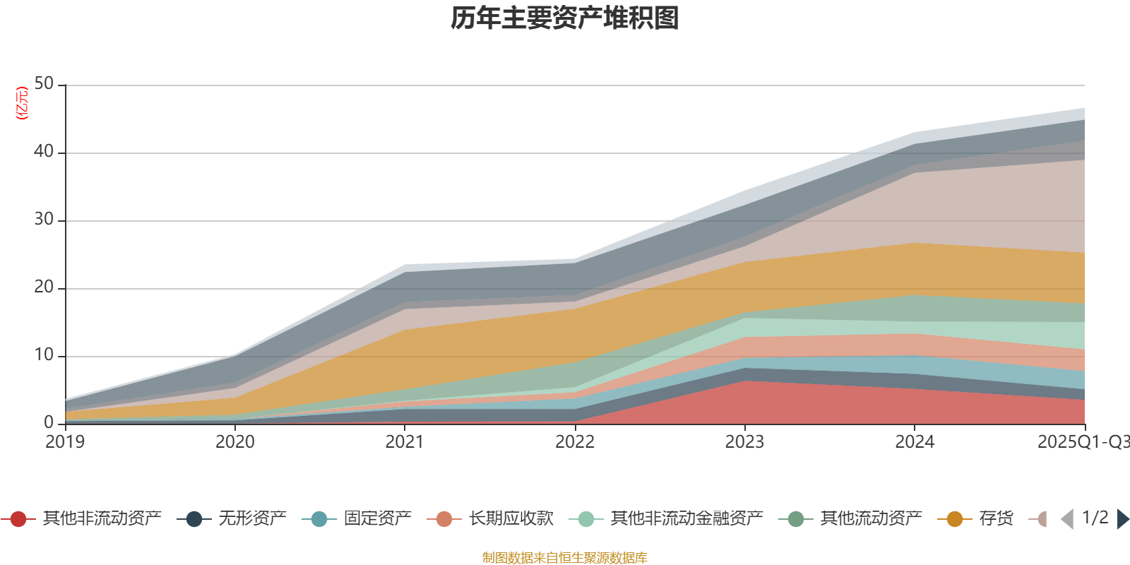 资产重大变化方面,截至2025年三季度末,公司交易性金融资产合计较上年末增加32.48%,占公司总资产比重上升5.34个百分点;其他非流动金融资产较上年末增加128.53%,占公司总资产比重上升4.56个百分点;其他非流动资产较上年末减少31.46%,占公司总资产比重下降4.39个百分点;应收票据及应收账款较上年末增加149.35%,占公司总资产比重上升3.48个百分点。