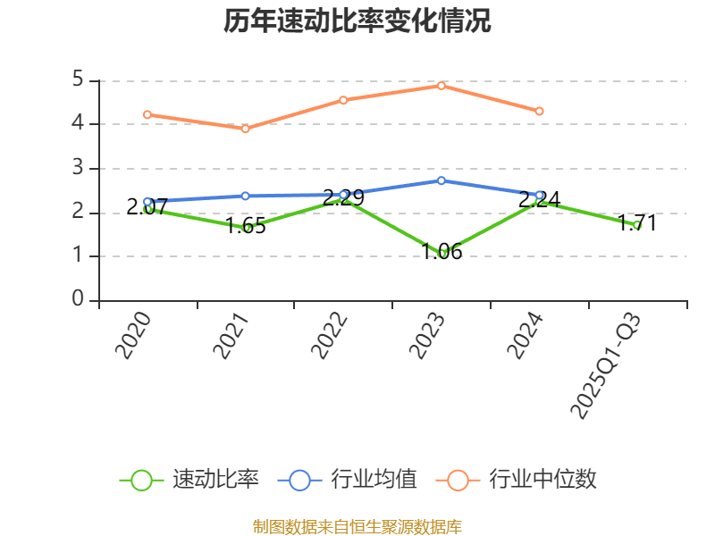 2025年前三季度,公司流动比率为2.25,速动比率为1.71。