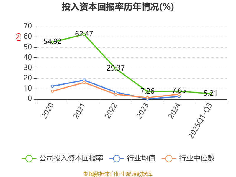 盈利能力方面, 2025年前三季度公司加权平均净资产收益率为6.64%,同比下降0.9个百分点。公司2025年前三季度投入资本回报率为5.21%,较上年同期下降0.52个百分点。