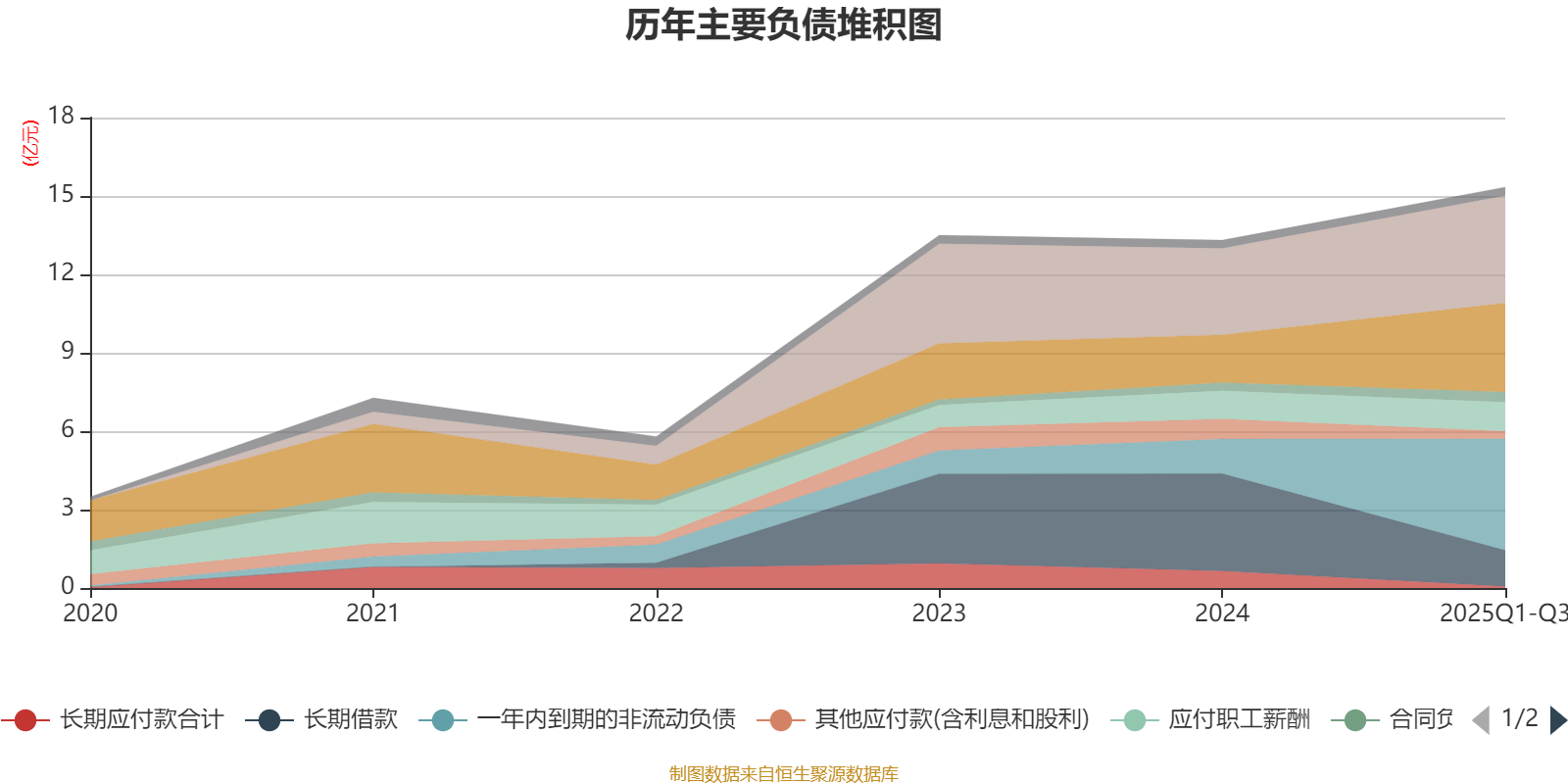 负债重大变化方面,截至2025年三季度末,公司一年内到期的非流动负债较上年末增加220.59%,占公司总资产比重上升6.06个百分点;长期借款较上年末减少62.76%,占公司总资产比重下降5.69个百分点;应付票据及应付账款较上年末增加85.61%,占公司总资产比重上升3.04个百分点;长期应付款合计较上年末减少91.16%,占公司总资产比重下降1.38个百分点。