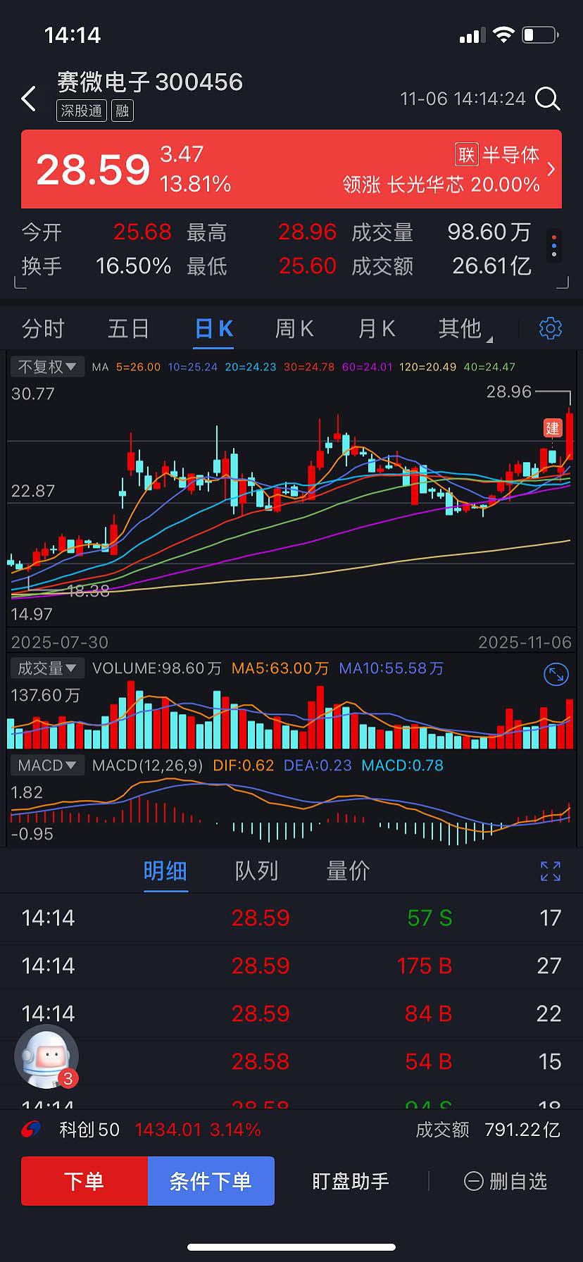 完美诠释老师预测明天半导体科技超级大行情我的赛微电子继续大涨 星宸科技明天怒涨一个点明天会涨了不用担心