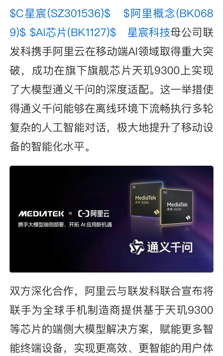 $星宸科技(SZ301536)$ 他爹为阿里千问提供芯片,可惜他要港股上市,公司不让涨