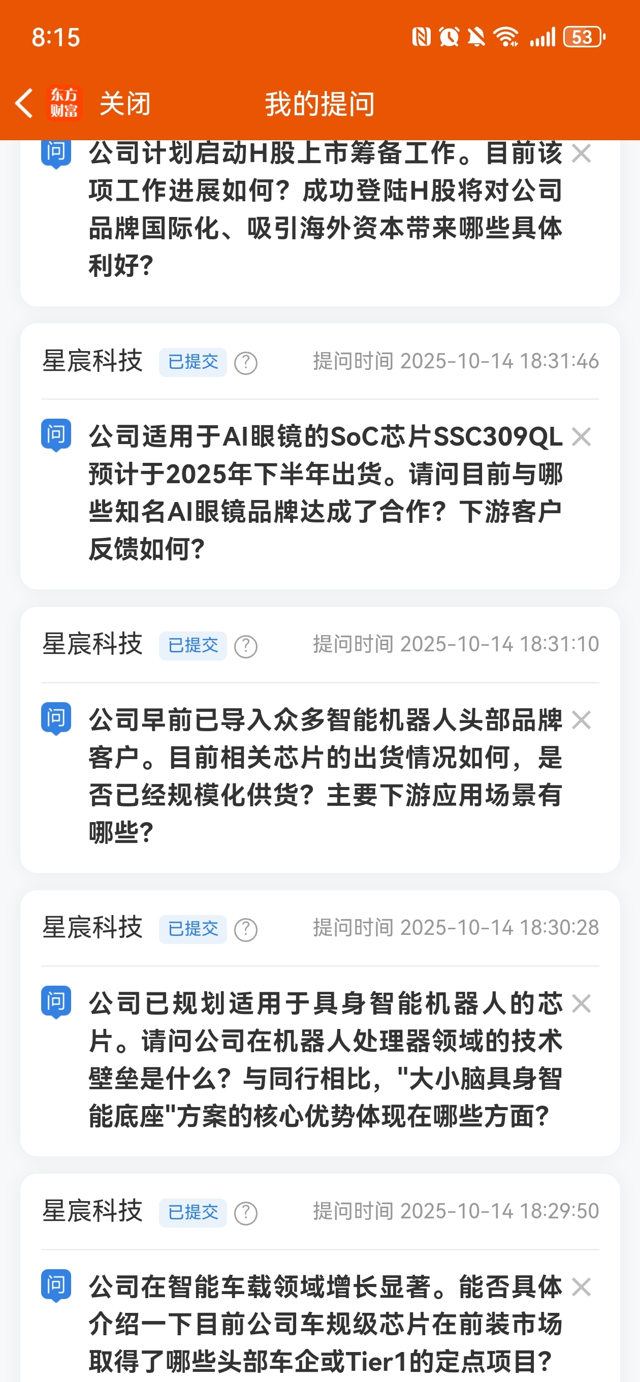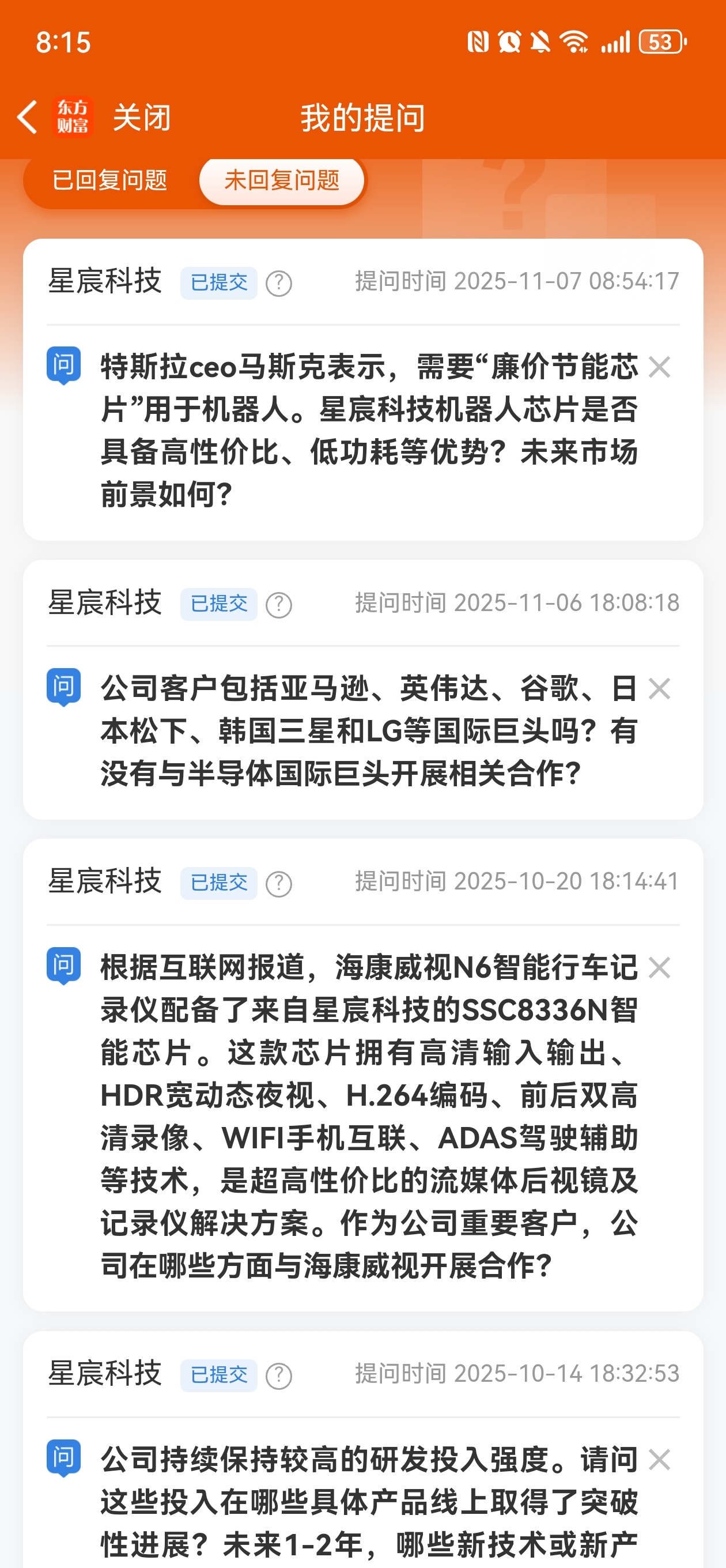 我一定是问到什么关键问题了!我的问题星宸科技董秘居然一个都不敢回复!