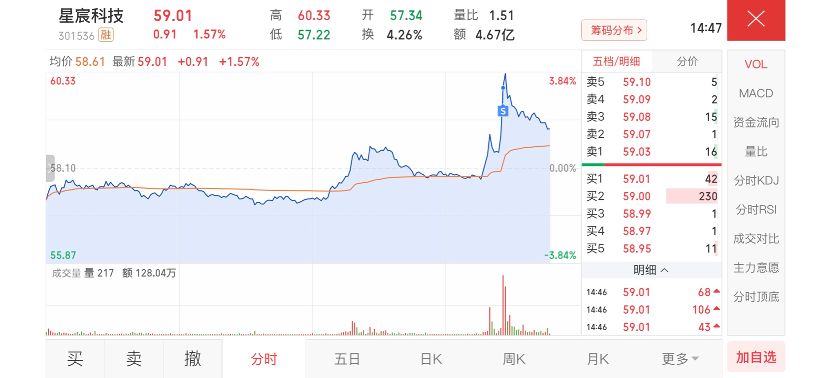 $星宸科技(SZ301536)$ 月线看当前大涨的概率不大、所以60先清了、留下的发财哈