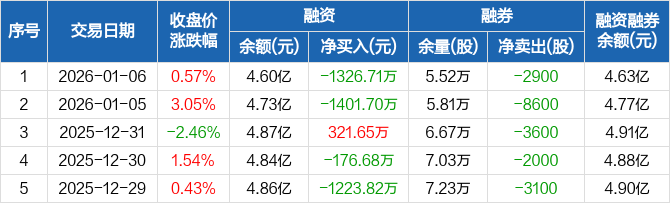 星宸科技:融资净偿还1326.71万元,融资余额4.6亿元(01-06)