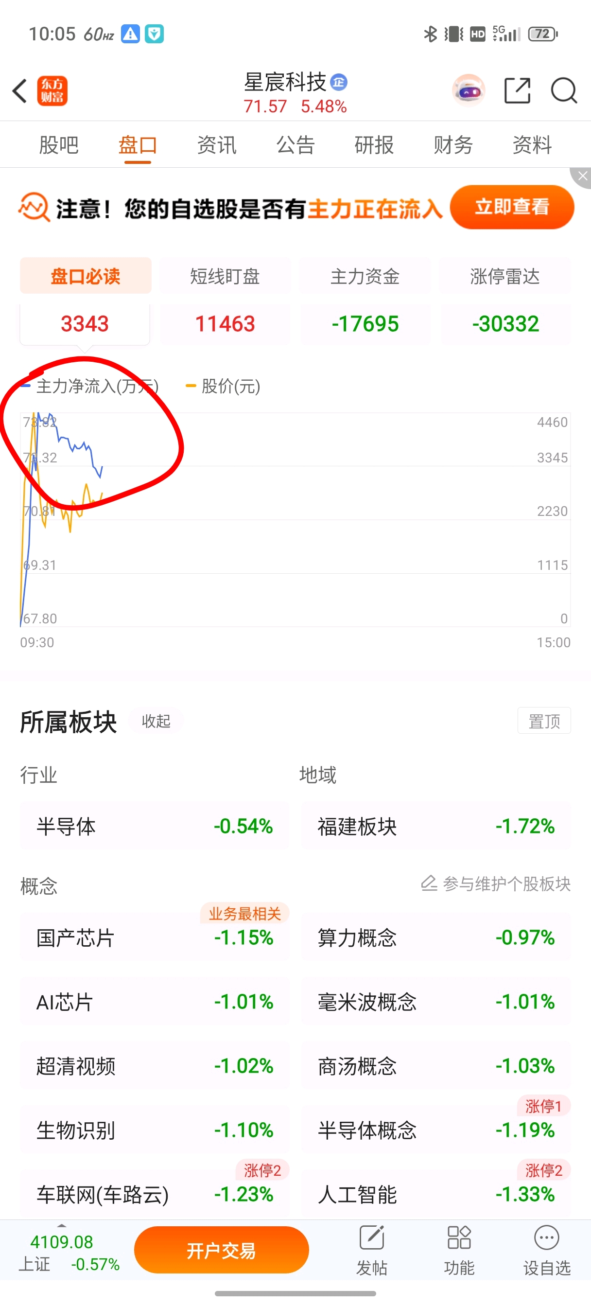 $星宸科技(SZ301536)$ 资金又在出逃,估计又要跌下去