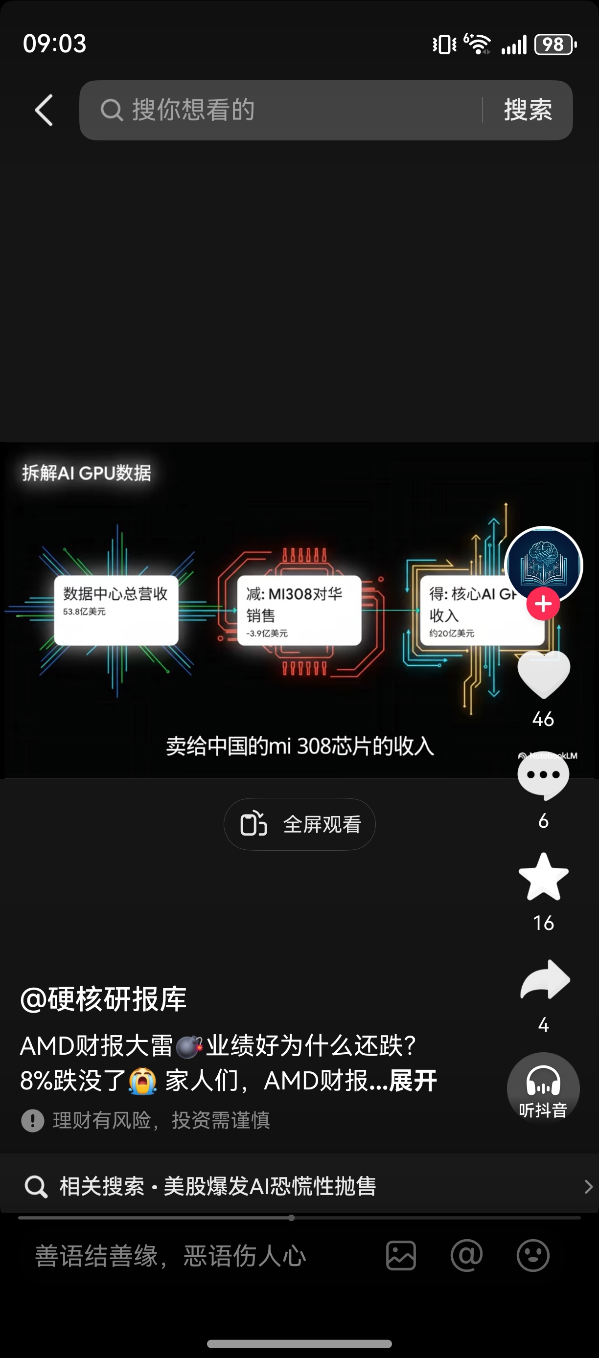 $星宸科技(SZ301536)$ 今天大概率AI会低开洗人然后爆啦,AMD2025年报增长34%,但是有对中国的出口是一次性最后一次交易,华尔街大佬怕的是这部分比重大的收入在未来一季度清零,所有才会暴跌,这部分收入会被其他市场吞噬占有,国内AI机会到了