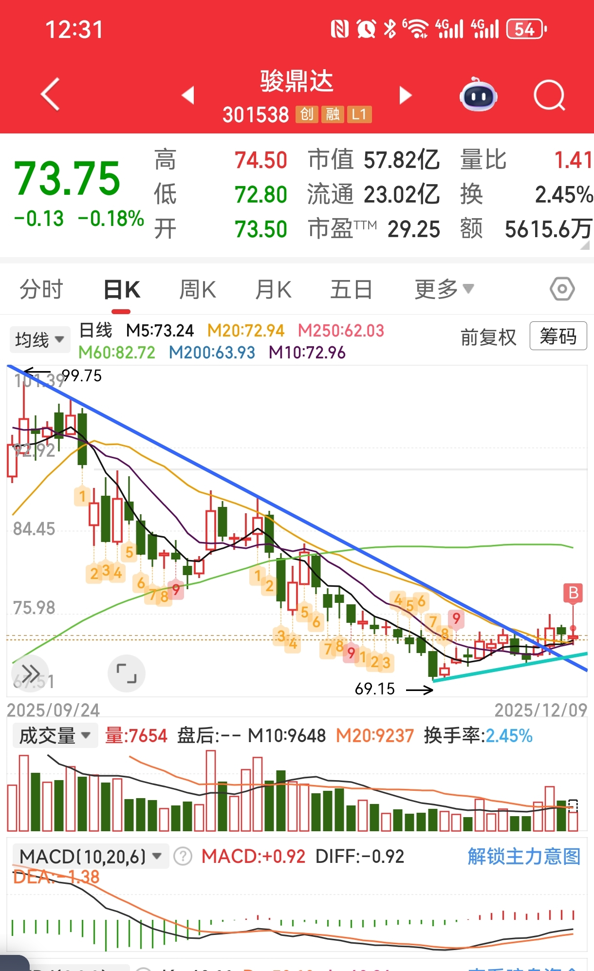 下跌趋势反转,低点抬高,能否成为新的起涨点?锁仓拿仨月静待花开。