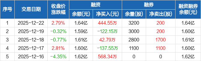 骏鼎达:融资净买入444.55万元,融资余额1.64亿元(12-22)