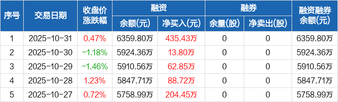 宏鑫科技:连续5日融资净买入累计805.25万元(10-31)