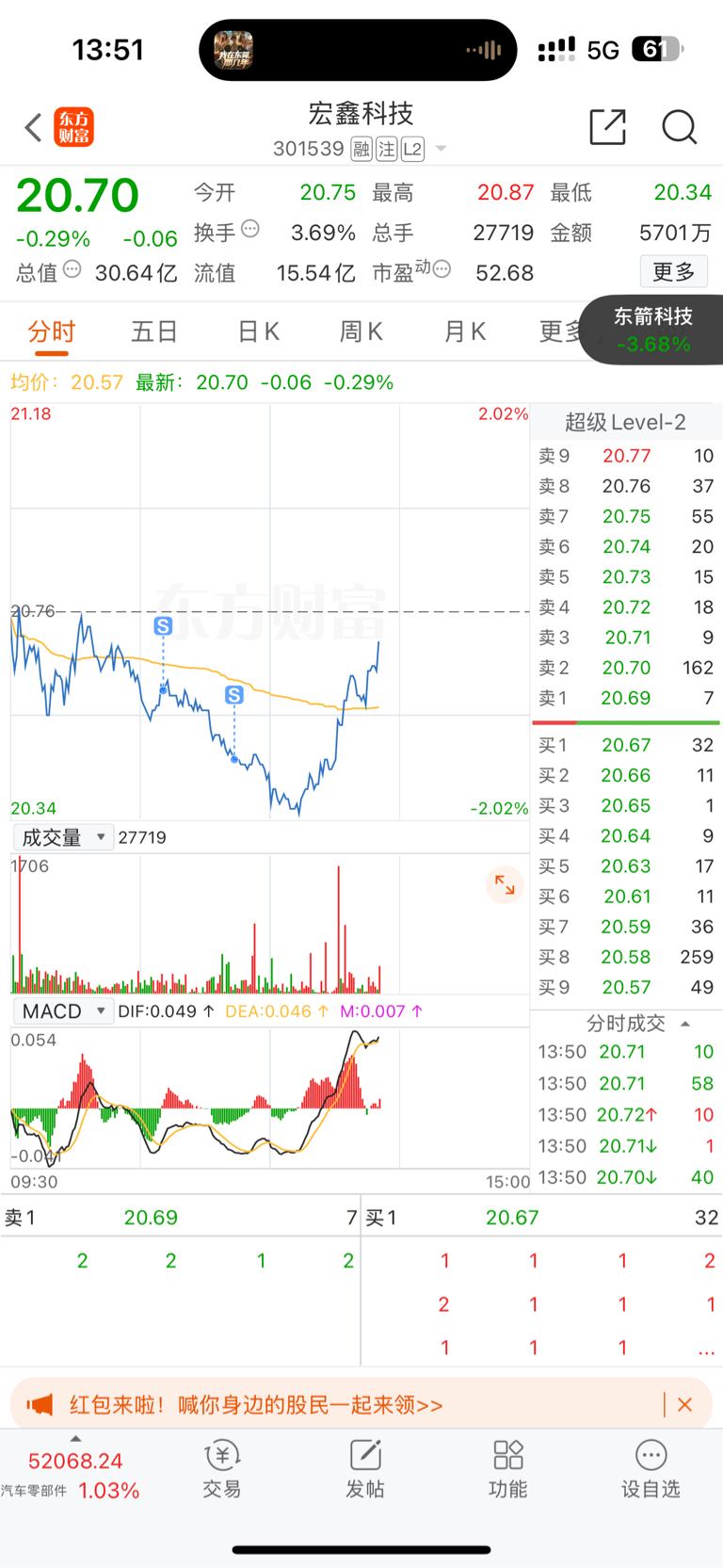 $宏鑫科技(SZ301539)$ 大爷的