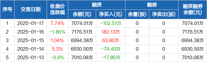崇德科技:融资净偿还102.51万元,融资余额7074.01万元(01-17)