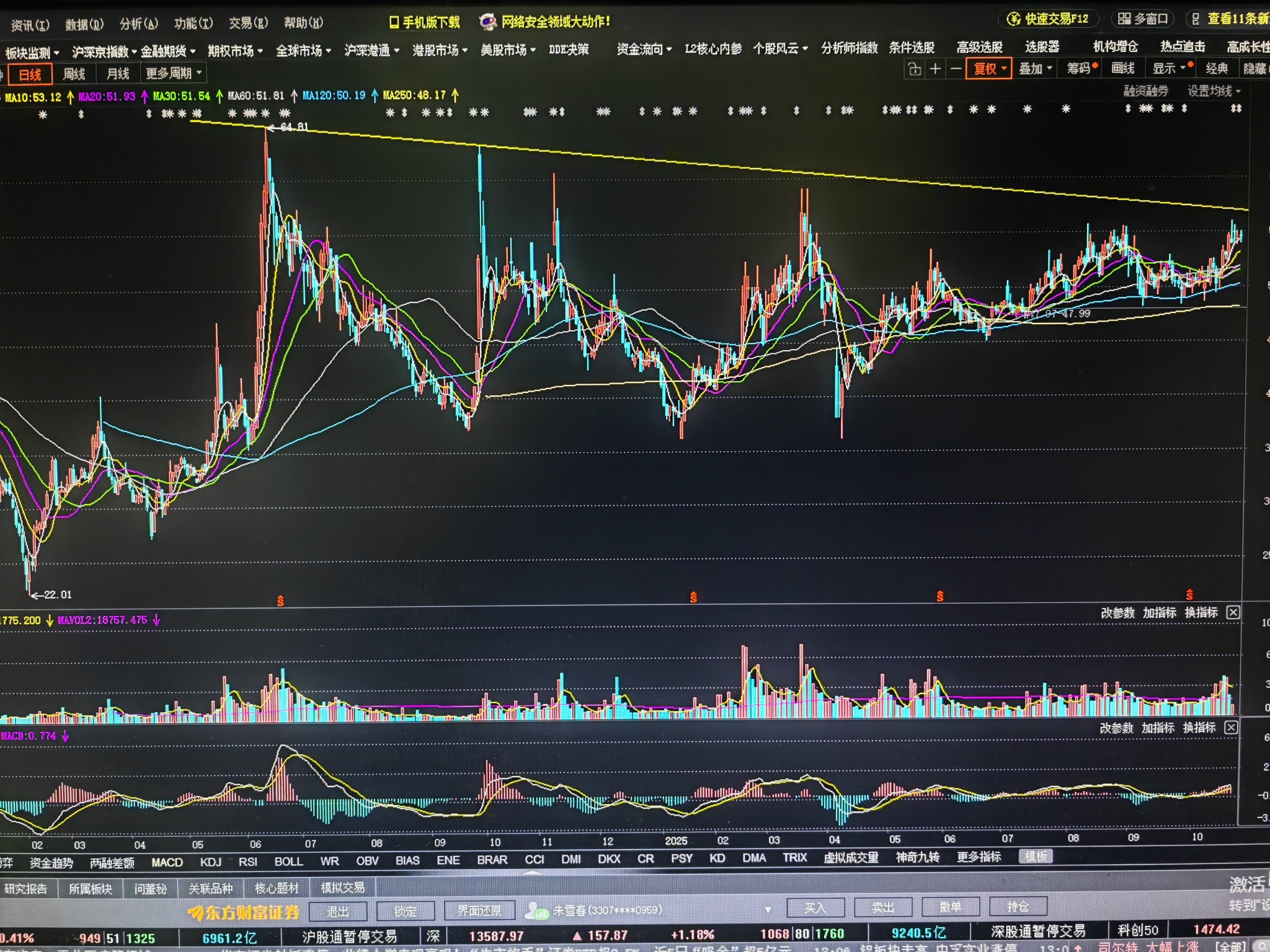 长线坚定看好,短线可上可下,向下二十天线就是强支撑,向上突破黄色趋势线就可能加速