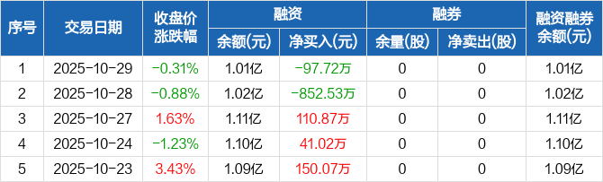 崇德科技:融资净偿还97.72万元,融资余额1.01亿元(10-29)