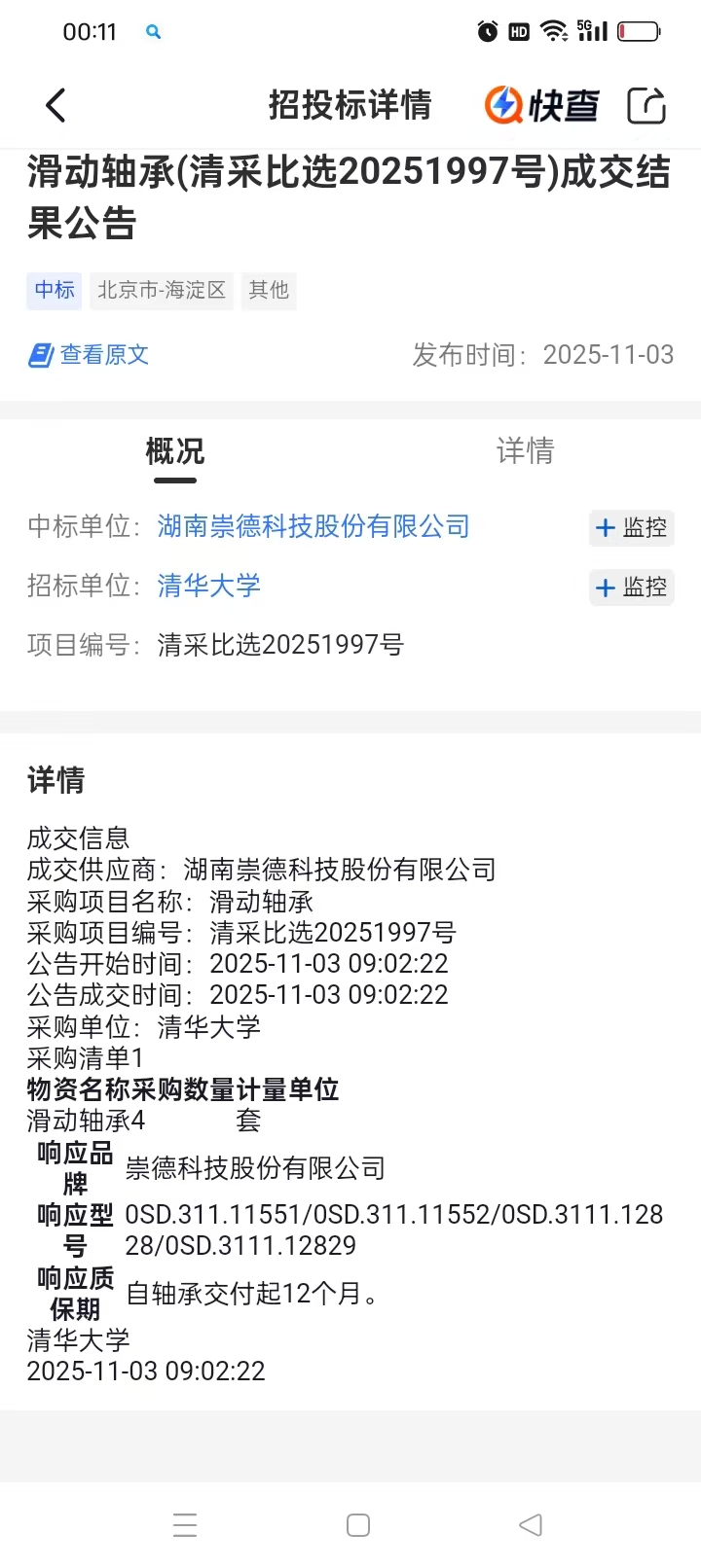 $崇德科技(SZ301548)$ 清华大学中标了?