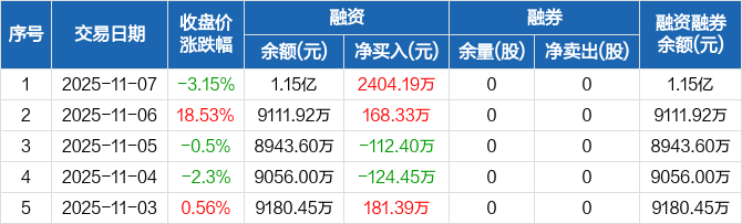 崇德科技:融资净买入2404.19万元,融资余额1.15亿元(11-07)