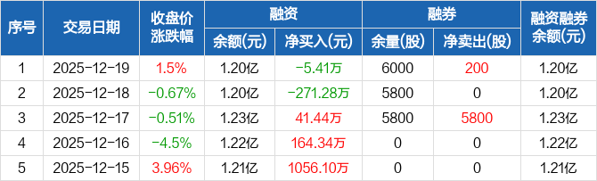 崇德科技:融资净偿还5.41万元,融资余额1.2亿元(12-19)