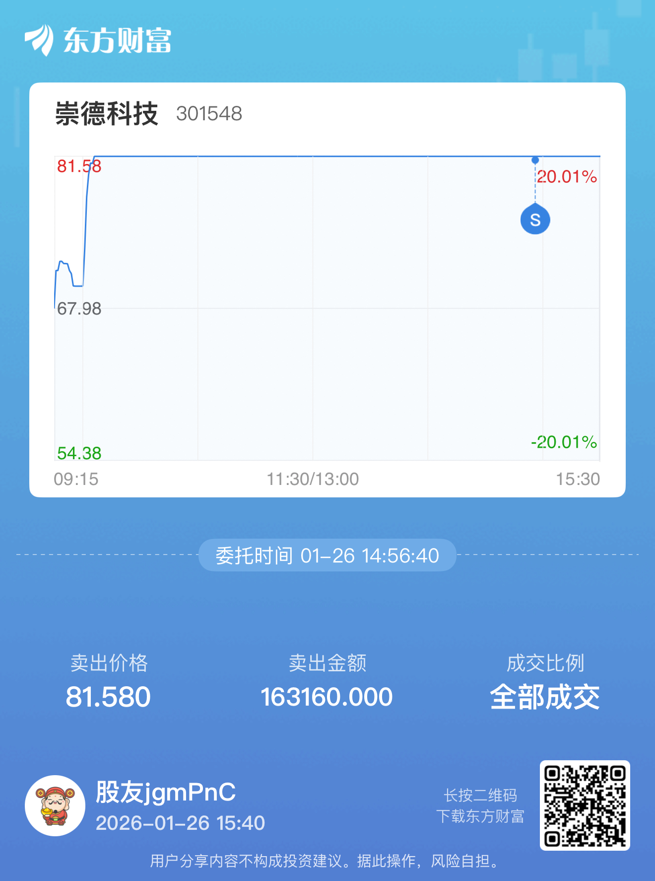 $崇德科技(SZ301548)$ 上次涨停卖了,主力回调五日线给个机会,我再上车