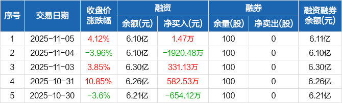 斯菱股份:融资净买入1.47万元,融资余额6.1亿元(11-05)