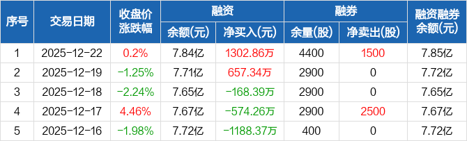 斯菱股份:融资净买入1302.86万元,融资余额7.84亿元(12-22)